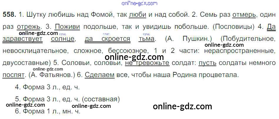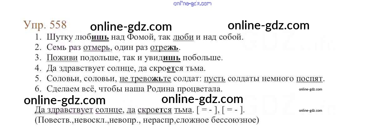 Готовые домашние задания по Русскому языку за 6 класс Учебник Баранов, Ладыженская 2015 - Упражнения Часть 2 558