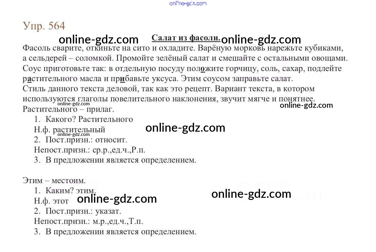 Готовые домашние задания по Русскому языку за 6 класс Учебник Баранов, Ладыженская 2015 - Упражнения Часть 2 564