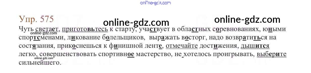 Готовые домашние задания по Русскому языку за 6 класс Учебник Баранов, Ладыженская 2015 - Упражнения Часть 2 575