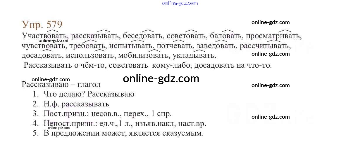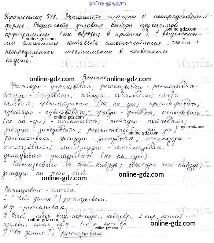 Готовые домашние задания по Русскому языку за 6 класс Учебник Баранов, Ладыженская 2015 - Упражнения Часть 2 579