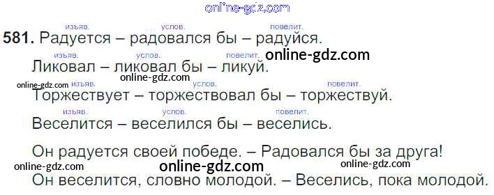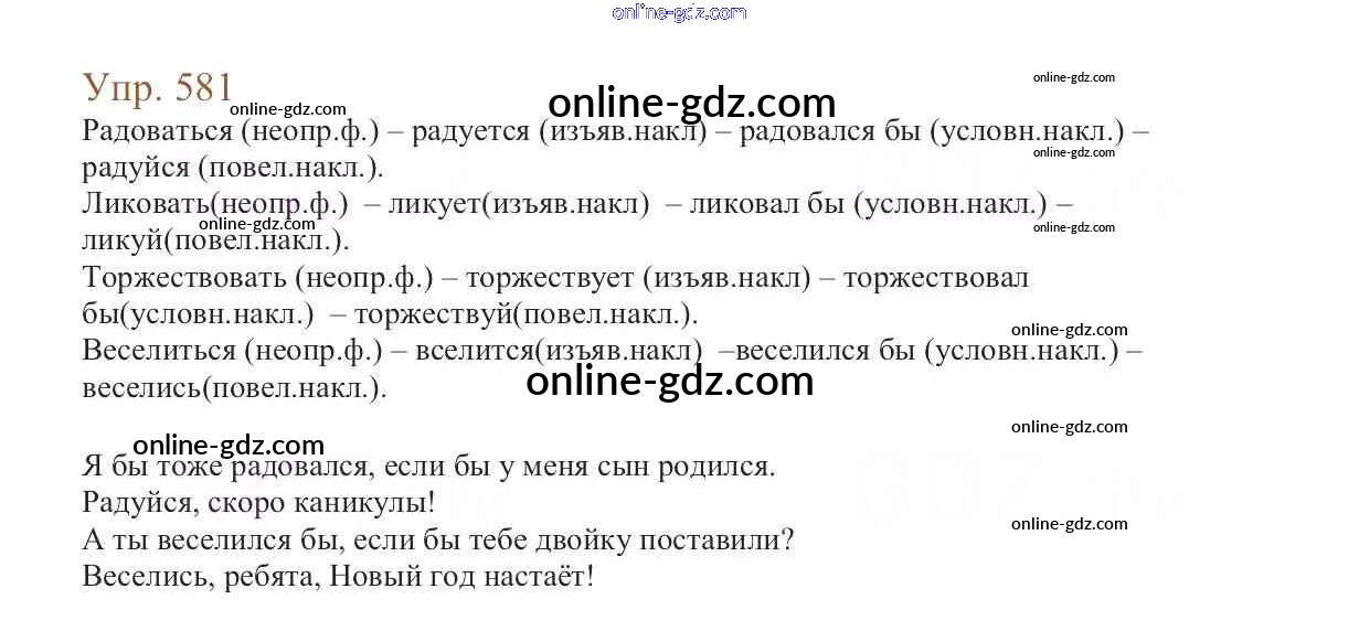 Готовые домашние задания по Русскому языку за 6 класс Учебник Баранов, Ладыженская 2015 - Упражнения Часть 2 581