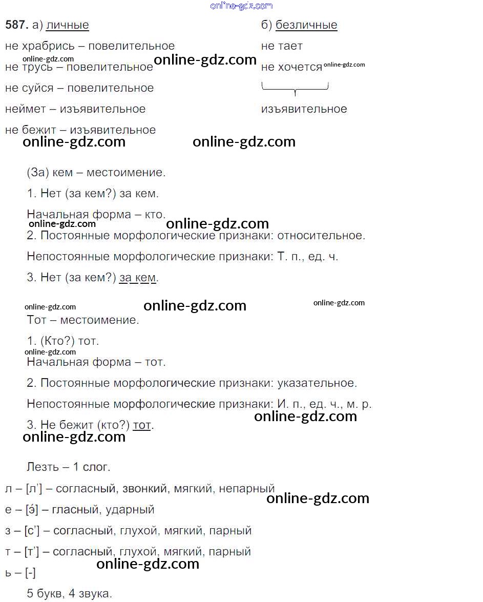 Готовые домашние задания по Русскому языку за 6 класс Учебник Баранов, Ладыженская 2015 - Упражнения Часть 2 587