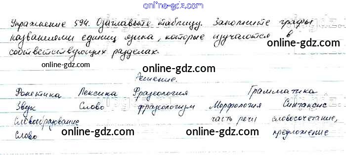 Готовые домашние задания по Русскому языку за 6 класс Учебник Баранов, Ладыженская 2015 - Упражнения Часть 2 594