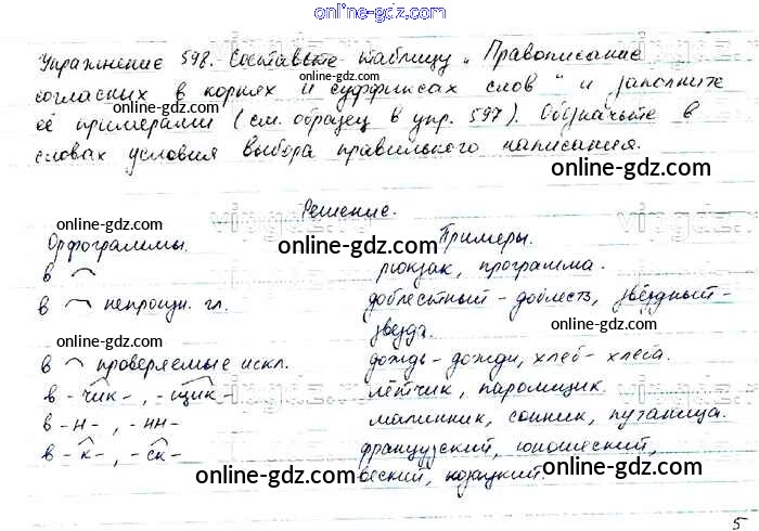 Готовые домашние задания по Русскому языку за 6 класс Учебник Баранов, Ладыженская 2015 - Упражнения Часть 2 598