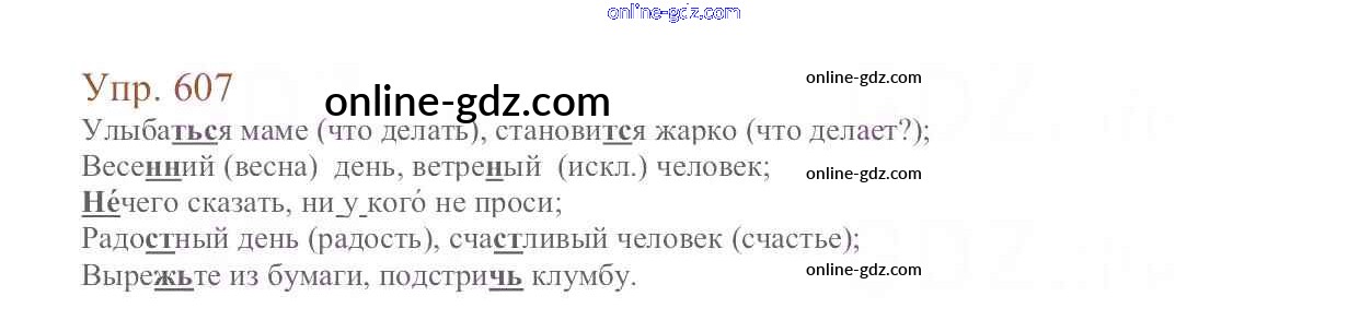 Готовые домашние задания по Русскому языку за 6 класс Учебник Баранов, Ладыженская 2015 - Упражнения Часть 2 607