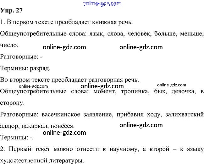 Готовые домашние задания по Русскому языку за 6 класс Учебник Быстрова, Кибирева Инновационная школа 2016 - Упражнения Часть 1 27