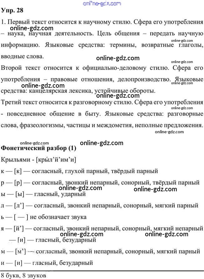 Готовые домашние задания по Русскому языку за 6 класс Учебник Быстрова, Кибирева Инновационная школа 2016 - Упражнения Часть 1 28