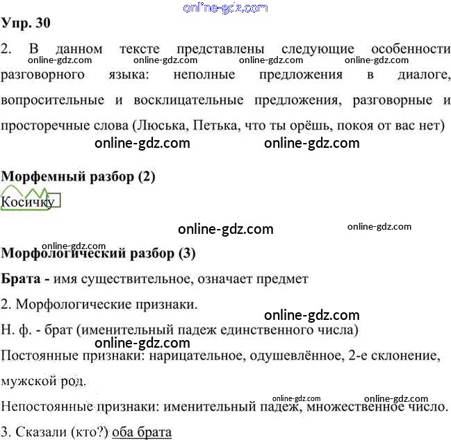 Готовые домашние задания по Русскому языку за 6 класс Учебник Быстрова, Кибирева Инновационная школа 2016 - Упражнения Часть 1 30