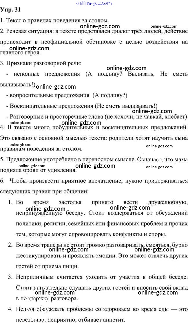 Готовые домашние задания по Русскому языку за 6 класс Учебник Быстрова, Кибирева Инновационная школа 2016 - Упражнения Часть 1 31