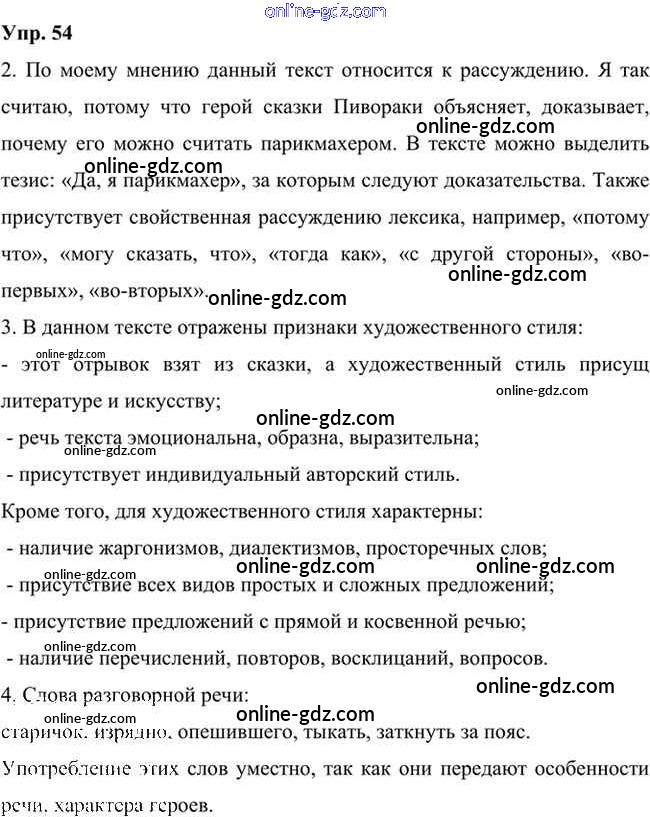 Готовые домашние задания по Русскому языку за 6 класс Учебник Быстрова, Кибирева Инновационная школа 2016 - Упражнения Часть 1 54