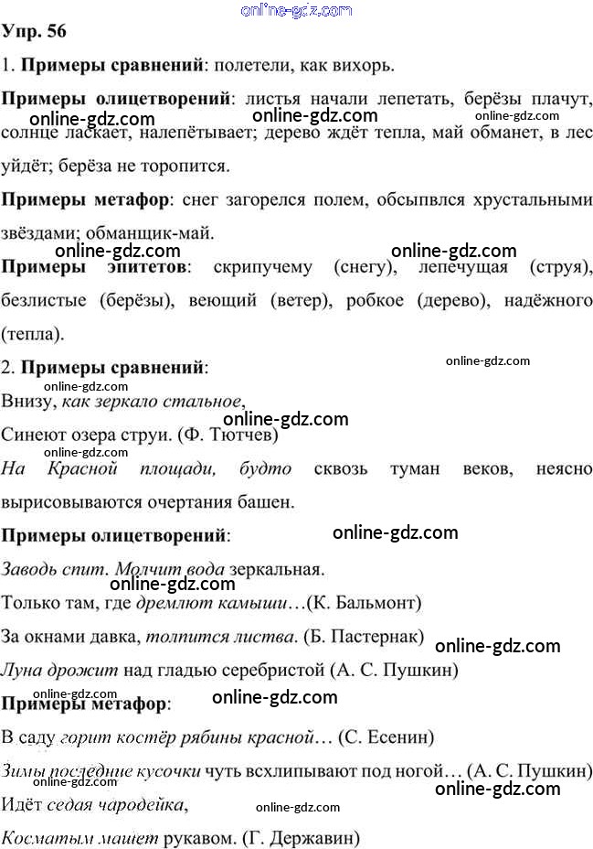 Готовые домашние задания по Русскому языку за 6 класс Учебник Быстрова, Кибирева Инновационная школа 2016 - Упражнения Часть 1 56