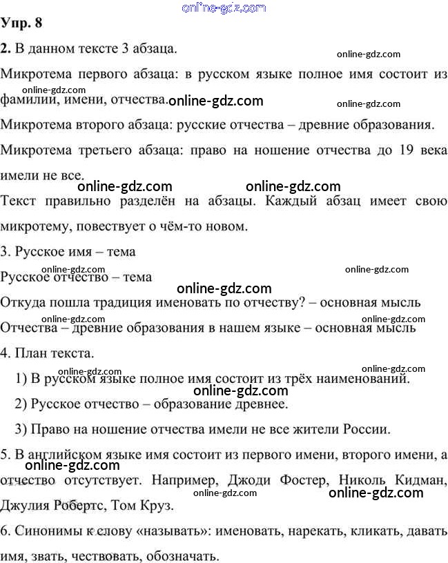 Готовые домашние задания по Русскому языку за 6 класс Учебник Быстрова, Кибирева Инновационная школа 2016 - Упражнения Часть 1 8