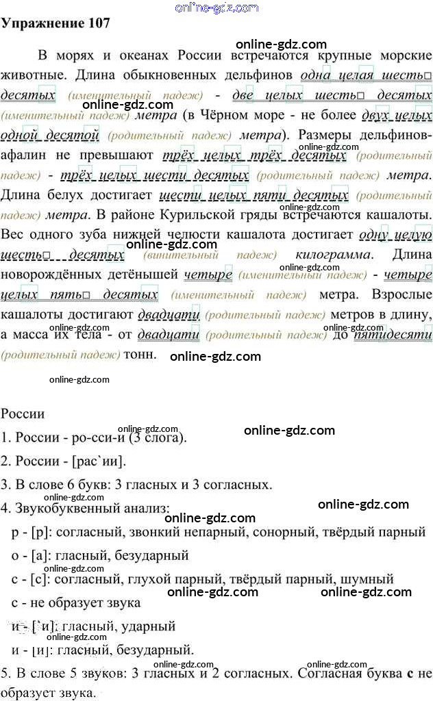 Готовые домашние задания по Русскому языку за 6 класс Учебник Быстрова, Кибирева Инновационная школа 2016 - Упражнения Часть 2 107