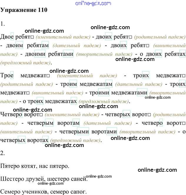 Готовые домашние задания по Русскому языку за 6 класс Учебник Быстрова, Кибирева Инновационная школа 2016 - Упражнения Часть 2 110