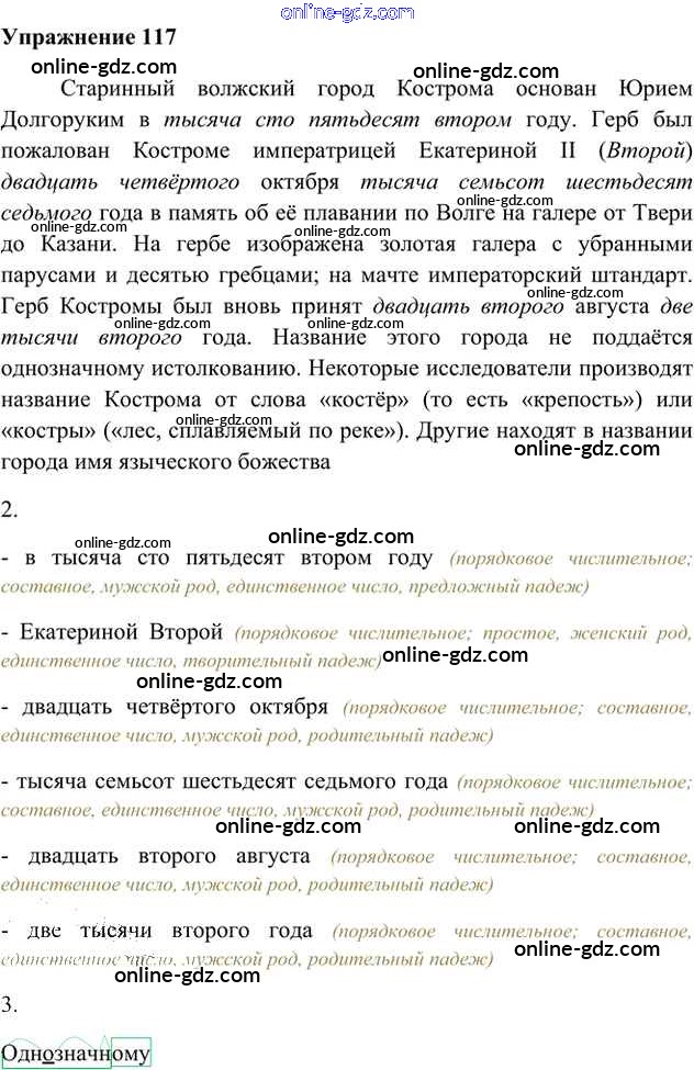 Готовые домашние задания по Русскому языку за 6 класс Учебник Быстрова, Кибирева Инновационная школа 2016 - Упражнения Часть 2 117