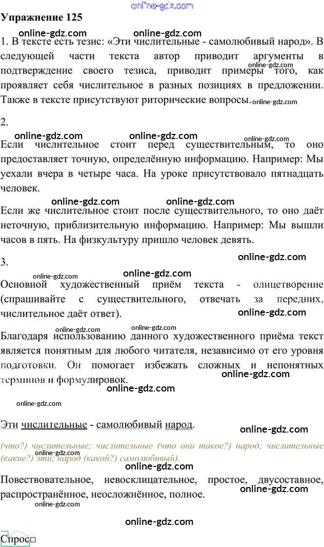 Готовые домашние задания по Русскому языку за 6 класс Учебник Быстрова, Кибирева Инновационная школа 2016 - Упражнения Часть 2 125