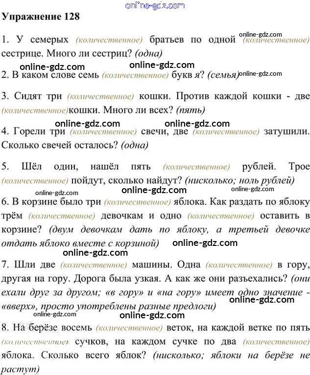 Готовые домашние задания по Русскому языку за 6 класс Учебник Быстрова, Кибирева Инновационная школа 2016 - Упражнения Часть 2 128