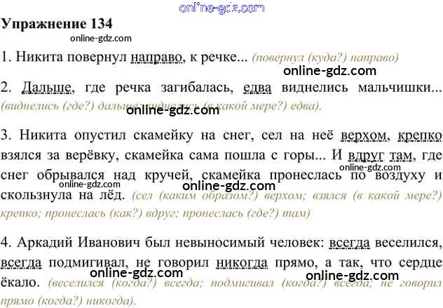 Готовые домашние задания по Русскому языку за 6 класс Учебник Быстрова, Кибирева Инновационная школа 2016 - Упражнения Часть 2 134