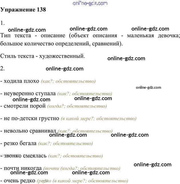 Готовые домашние задания по Русскому языку за 6 класс Учебник Быстрова, Кибирева Инновационная школа 2016 - Упражнения Часть 2 138