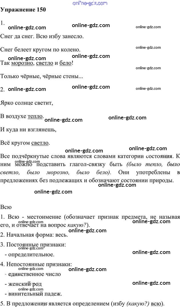 Готовые домашние задания по Русскому языку за 6 класс Учебник Быстрова, Кибирева Инновационная школа 2016 - Упражнения Часть 2 150