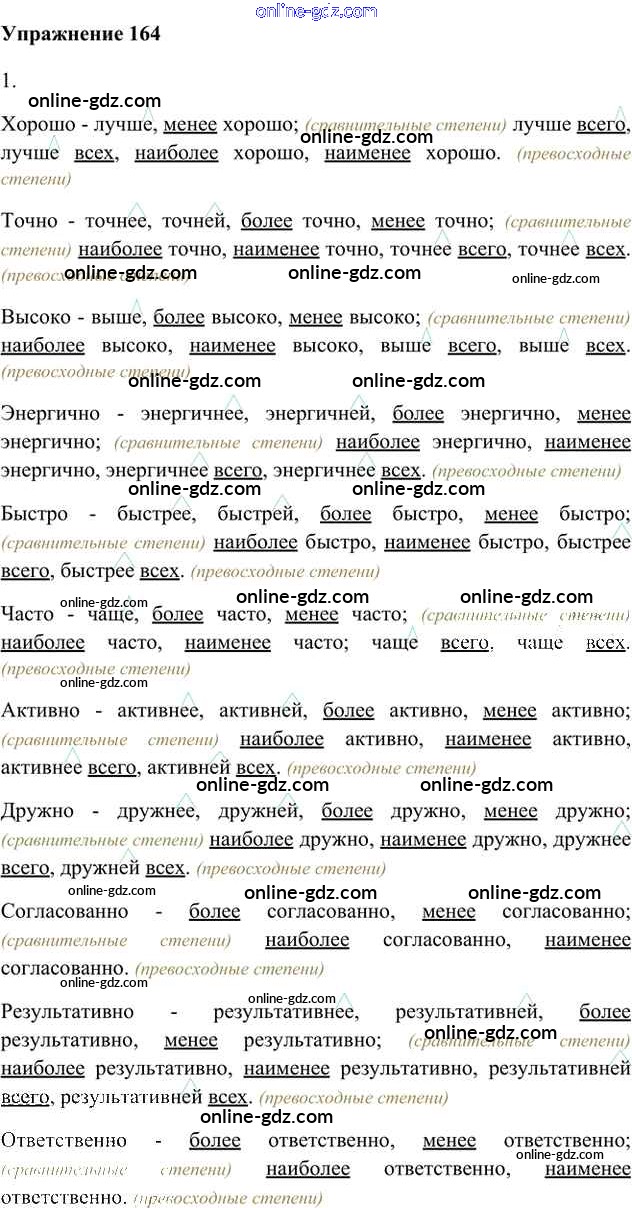Готовые домашние задания по Русскому языку за 6 класс Учебник Быстрова, Кибирева Инновационная школа 2016 - Упражнения Часть 2 164