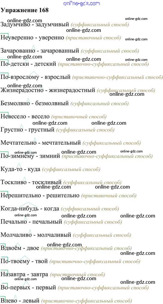 Готовые домашние задания по Русскому языку за 6 класс Учебник Быстрова, Кибирева Инновационная школа 2016 - Упражнения Часть 2 168