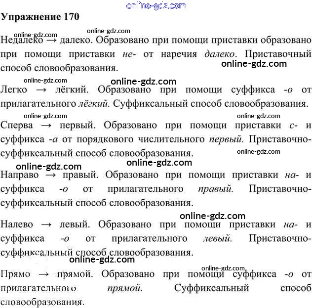 Готовые домашние задания по Русскому языку за 6 класс Учебник Быстрова, Кибирева Инновационная школа 2016 - Упражнения Часть 2 170