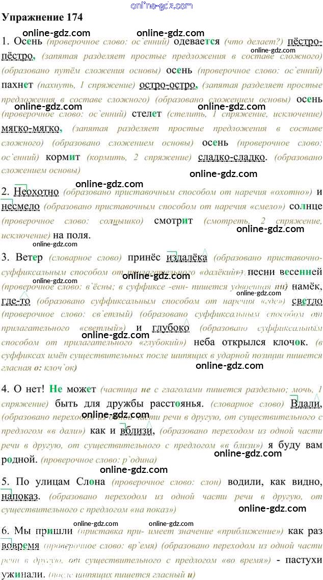 Готовые домашние задания по Русскому языку за 6 класс Учебник Быстрова, Кибирева Инновационная школа 2016 - Упражнения Часть 2 174