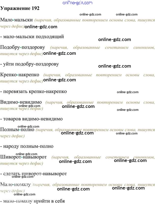 Готовые домашние задания по Русскому языку за 6 класс Учебник Быстрова, Кибирева Инновационная школа 2016 - Упражнения Часть 2 192