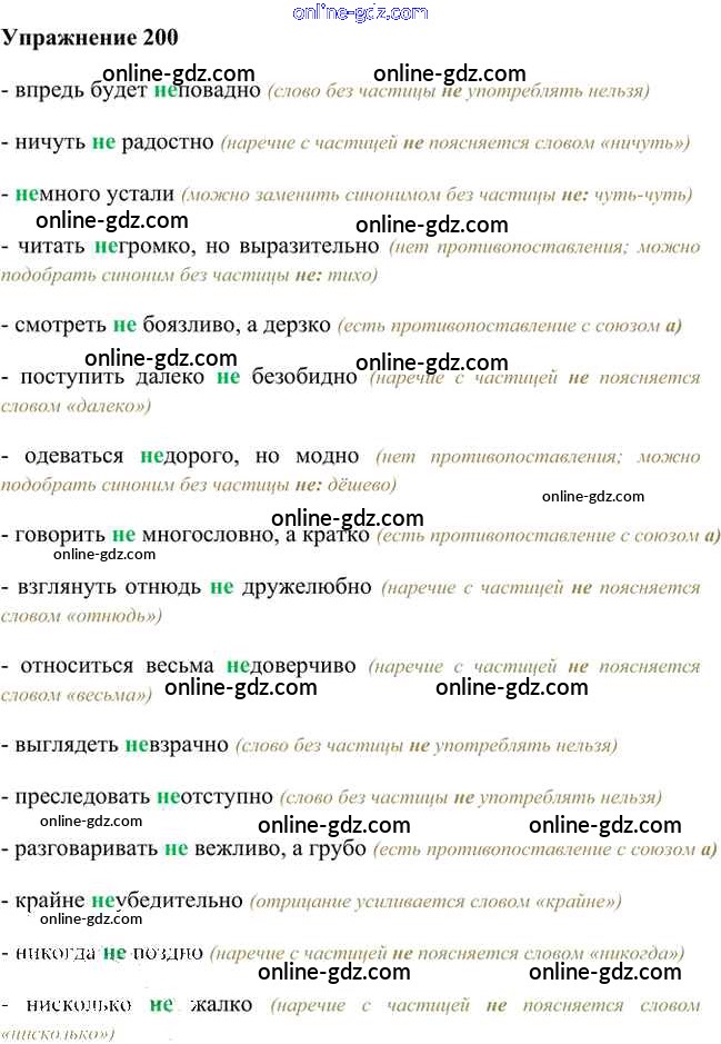 Готовые домашние задания по Русскому языку за 6 класс Учебник Быстрова, Кибирева Инновационная школа 2016 - Упражнения Часть 2 200
