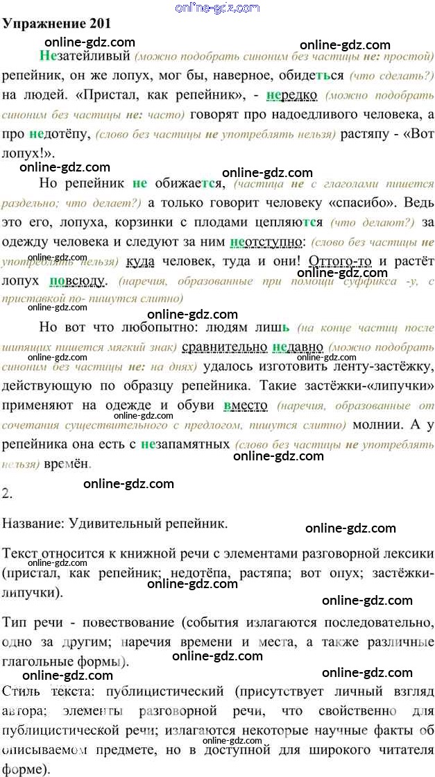 Готовые домашние задания по Русскому языку за 6 класс Учебник Быстрова, Кибирева Инновационная школа 2016 - Упражнения Часть 2 201