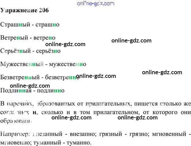 Готовые домашние задания по Русскому языку за 6 класс Учебник Быстрова, Кибирева Инновационная школа 2016 - Упражнения Часть 2 206