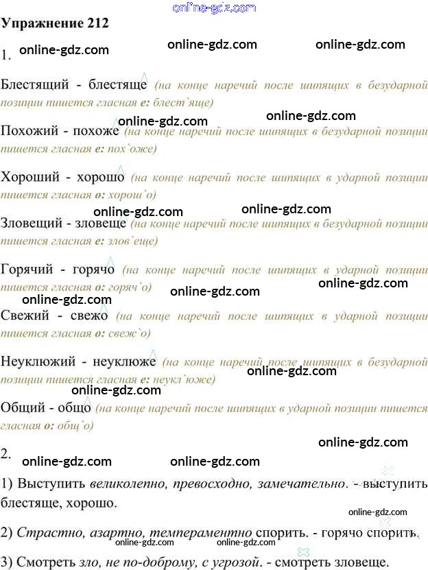 Готовые домашние задания по Русскому языку за 6 класс Учебник Быстрова, Кибирева Инновационная школа 2016 - Упражнения Часть 2 212