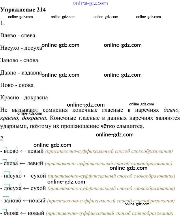 Готовые домашние задания по Русскому языку за 6 класс Учебник Быстрова, Кибирева Инновационная школа 2016 - Упражнения Часть 2 214