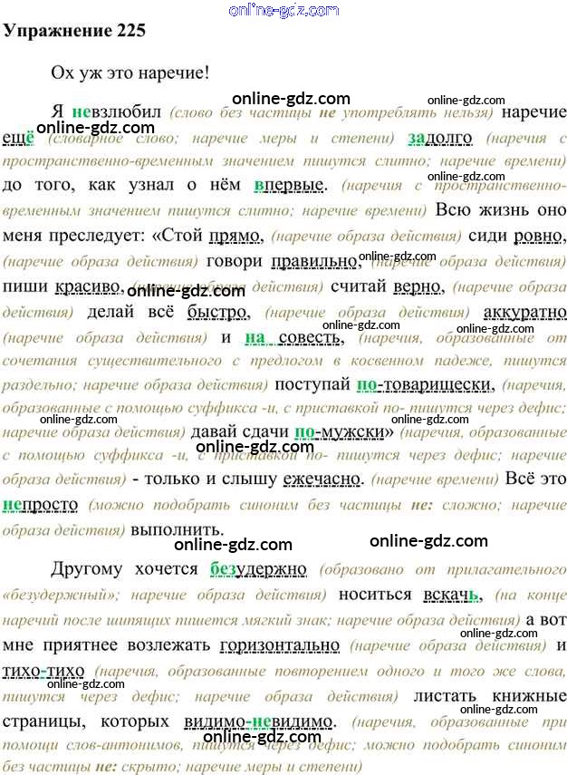 Готовые домашние задания по Русскому языку за 6 класс Учебник Быстрова, Кибирева Инновационная школа 2016 - Упражнения Часть 2 225