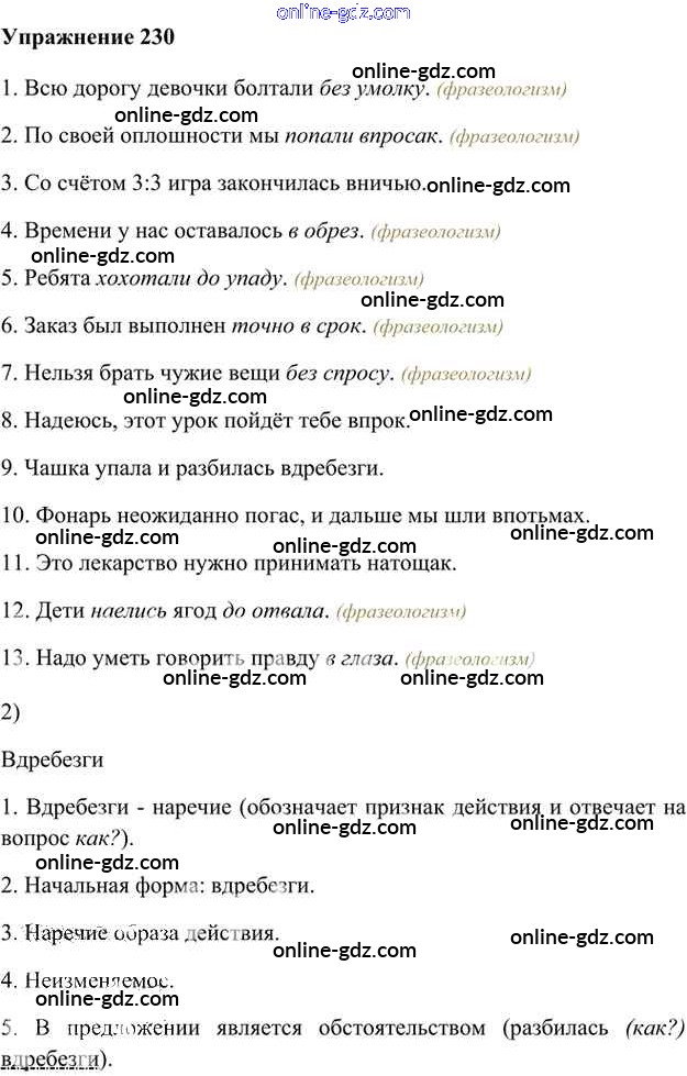 Готовые домашние задания по Русскому языку за 6 класс Учебник Быстрова, Кибирева Инновационная школа 2016 - Упражнения Часть 2 230