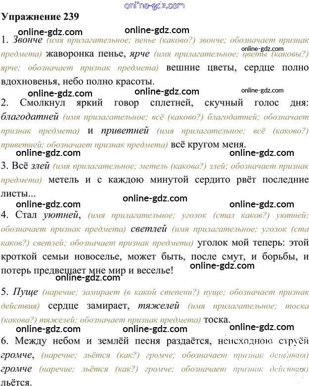 Готовые домашние задания по Русскому языку за 6 класс Учебник Быстрова, Кибирева Инновационная школа 2016 - Упражнения Часть 2 239