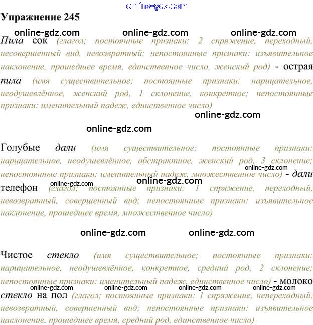 Готовые домашние задания по Русскому языку за 6 класс Учебник Быстрова, Кибирева Инновационная школа 2016 - Упражнения Часть 2 245