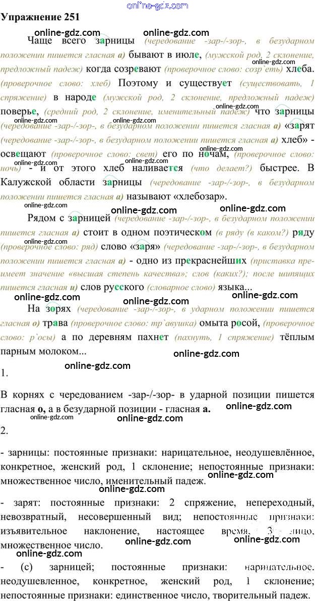 Готовые домашние задания по Русскому языку за 6 класс Учебник Быстрова, Кибирева Инновационная школа 2016 - Упражнения Часть 2 251
