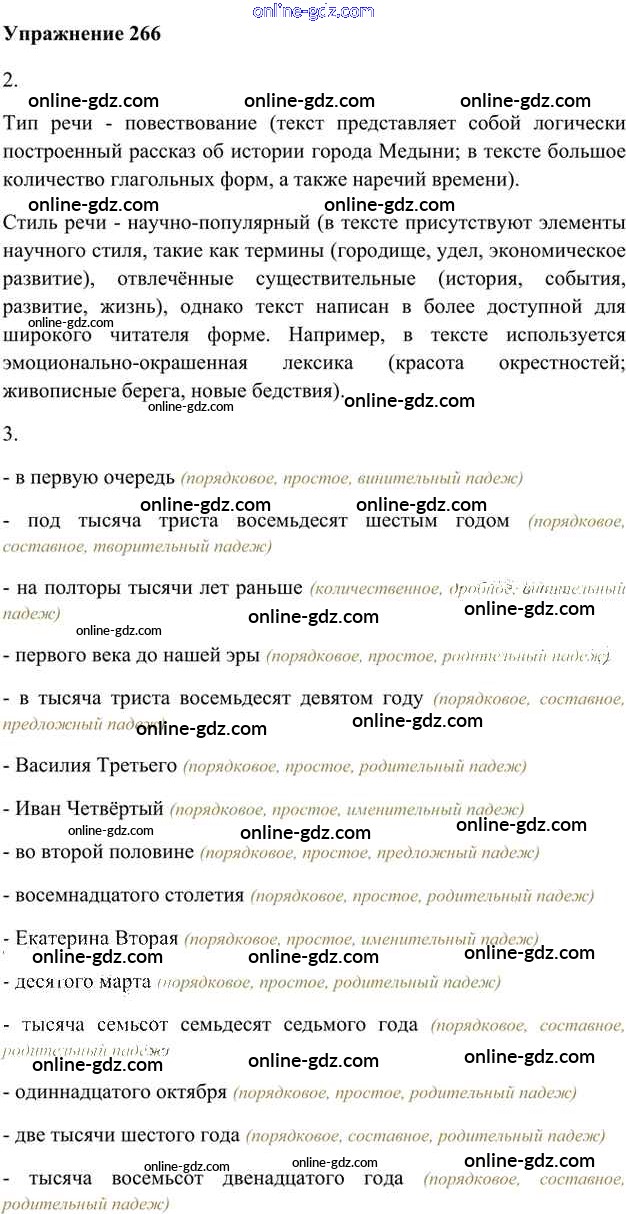 Готовые домашние задания по Русскому языку за 6 класс Учебник Быстрова, Кибирева Инновационная школа 2016 - Упражнения Часть 2 266