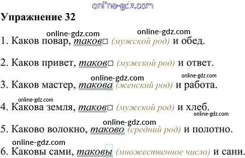 Готовые домашние задания по Русскому языку за 6 класс Учебник Быстрова, Кибирева Инновационная школа 2016 - Упражнения Часть 2 32