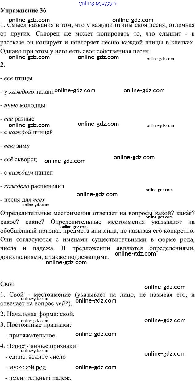 Готовые домашние задания по Русскому языку за 6 класс Учебник Быстрова, Кибирева Инновационная школа 2016 - Упражнения Часть 2 36