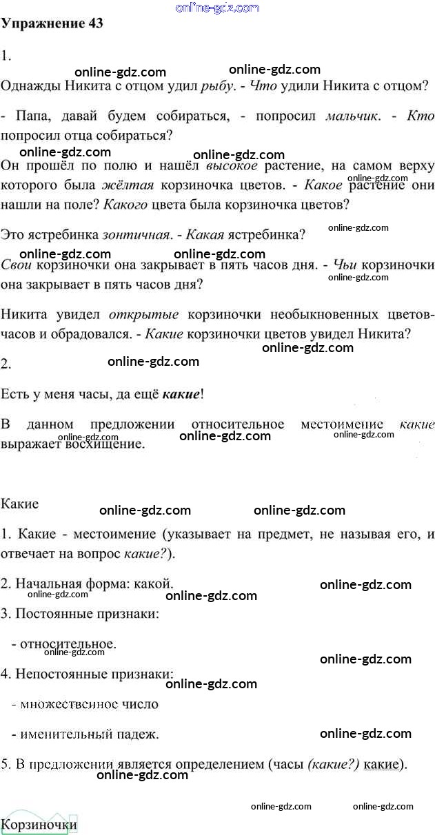Готовые домашние задания по Русскому языку за 6 класс Учебник Быстрова, Кибирева Инновационная школа 2016 - Упражнения Часть 2 43