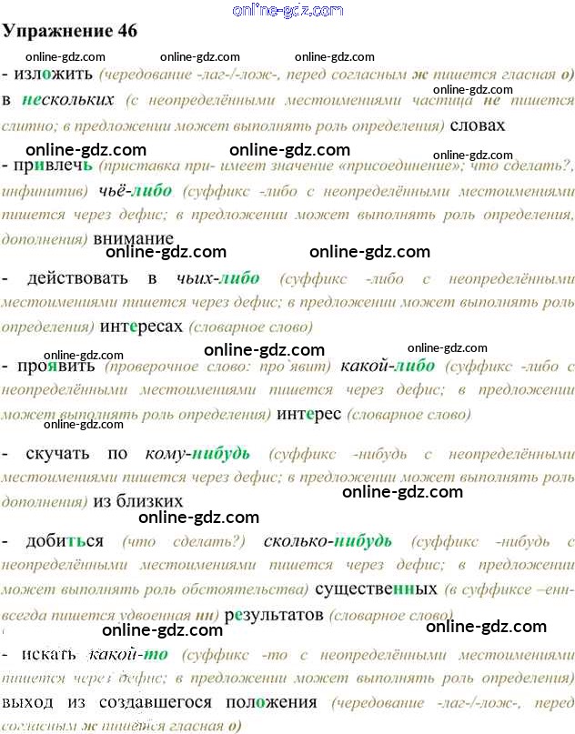 Готовые домашние задания по Русскому языку за 6 класс Учебник Быстрова, Кибирева Инновационная школа 2016 - Упражнения Часть 2 46