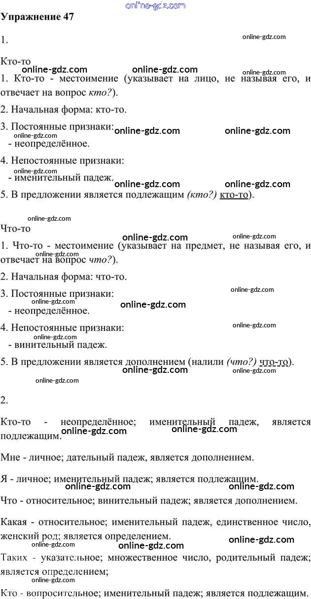 Готовые домашние задания по Русскому языку за 6 класс Учебник Быстрова, Кибирева Инновационная школа 2016 - Упражнения Часть 2 47