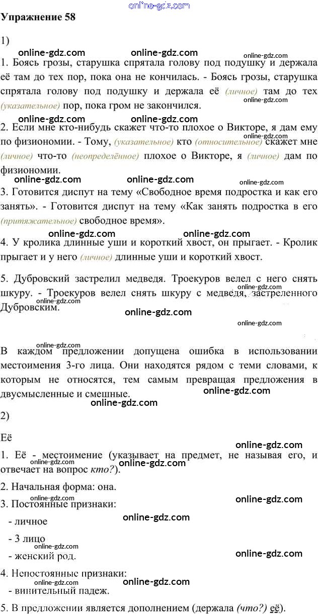 Готовые домашние задания по Русскому языку за 6 класс Учебник Быстрова, Кибирева Инновационная школа 2016 - Упражнения Часть 2 58