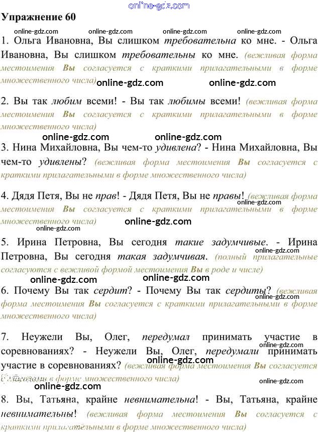 Готовые домашние задания по Русскому языку за 6 класс Учебник Быстрова, Кибирева Инновационная школа 2016 - Упражнения Часть 2 60