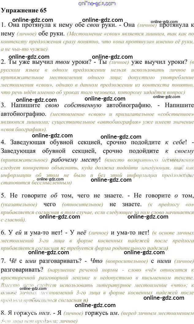 Готовые домашние задания по Русскому языку за 6 класс Учебник Быстрова, Кибирева Инновационная школа 2016 - Упражнения Часть 2 65