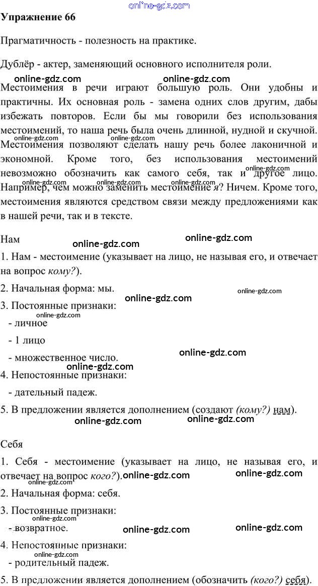 Готовые домашние задания по Русскому языку за 6 класс Учебник Быстрова, Кибирева Инновационная школа 2016 - Упражнения Часть 2 66