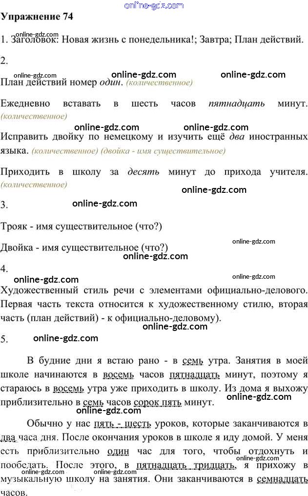 Готовые домашние задания по Русскому языку за 6 класс Учебник Быстрова, Кибирева Инновационная школа 2016 - Упражнения Часть 2 74
